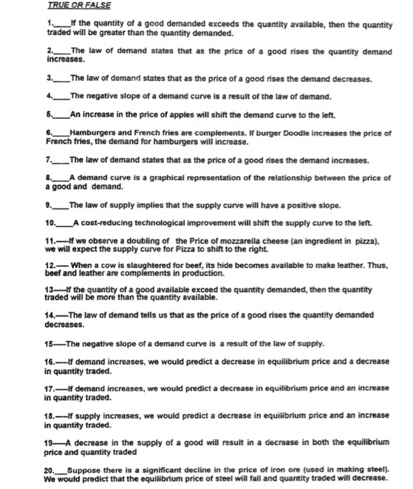 Solved 1if The Quantity Of A Good Demanded Exceeds The Qu