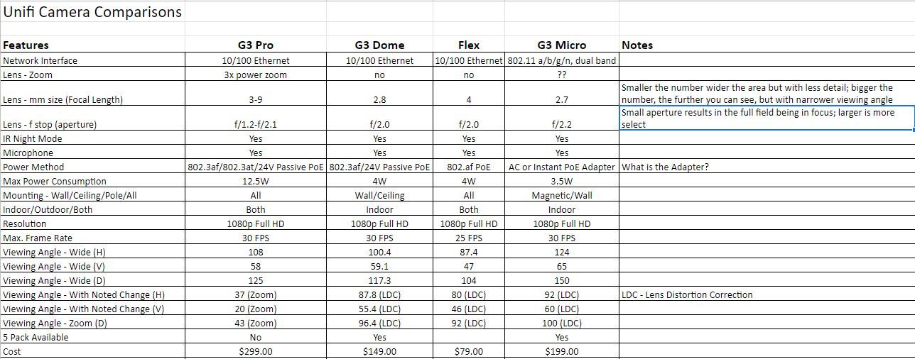 Camera Comparison G3 Pro Flex Dome Micro Ubiquiti Community