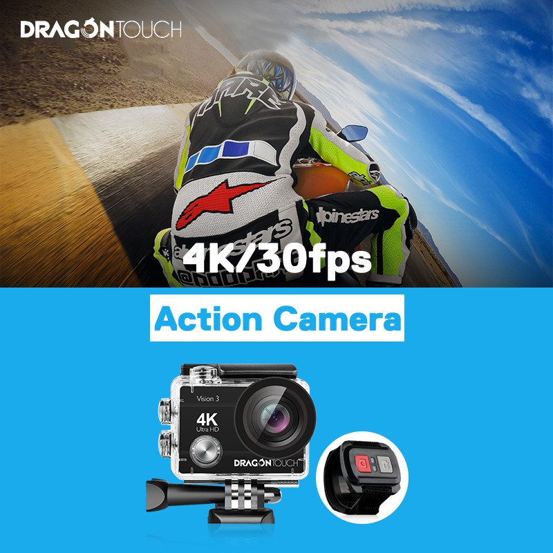 Dragon Touch Vision 3 4k 30fps Wifi Action Camera 16mp 170 Wide