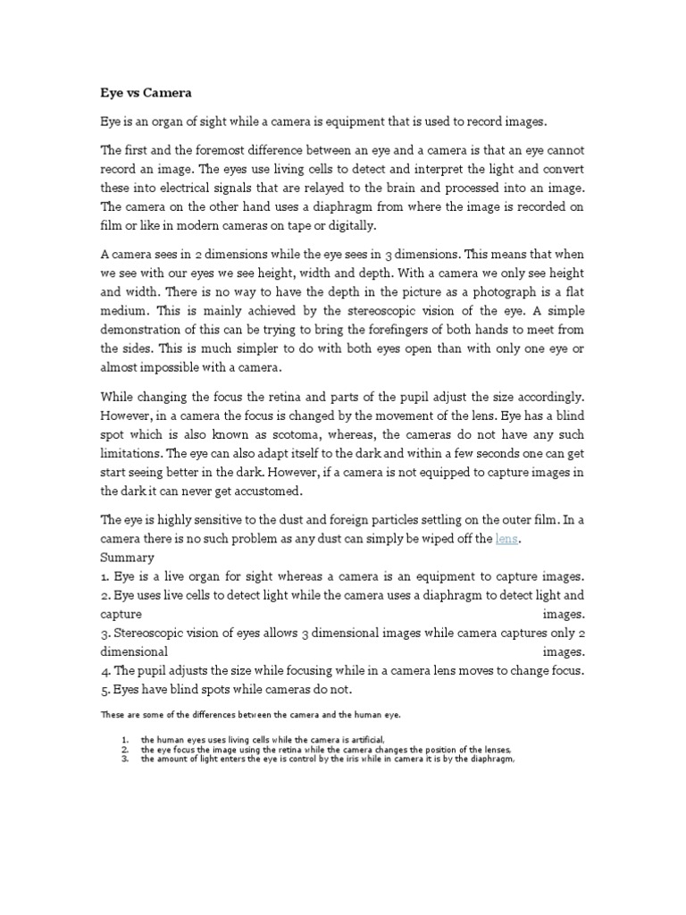 Eye Vs Camera Human Eye Camera