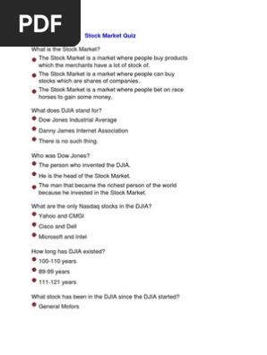 Stock Market Quiz Dow Jones Industrial Average New York Stock Exchange