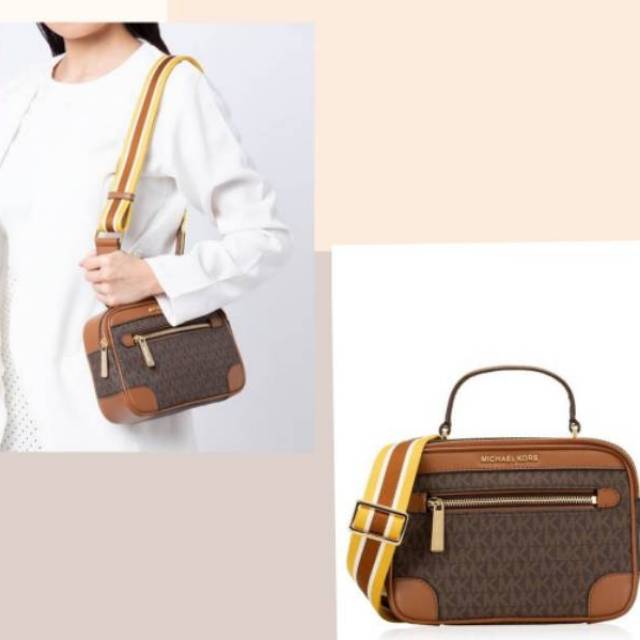 Michael Kors Travel Monogram Top Handle Camera Bag Brown Luggage