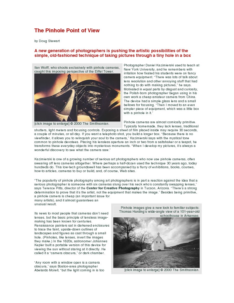 The Pinhole Point Of View Camera Camera Lens